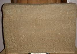 | Description / विवरण | Stone block with inscription of 8 lines in Devnagri script and two lines in Persian in right margins but not readable. The date vs 1586 is mentioned on it. |