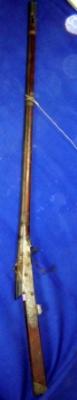 | Description / विवरण | Long, single barrel match lock gun vine design of silver on the barrel and trigger. |