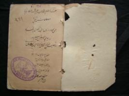 | Description / विवरण | This is a handwritten epithet. It is written in Persian language . It is written by Saiyad Vashir in 1267 Hijri. It deals with praising of god. |