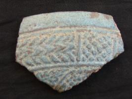 | Description / विवरण | It is a potsherd of buff color. It has got incised decoration. It is treated with a greenish and whitish treatment on its outer surface, which gives light green look to it. It has a concave body. |
