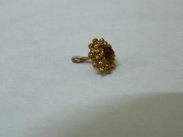 | Description / विवरण | It s a metal nose pin. Flower shape design and red bead in center. Golden colour nose-pin. |