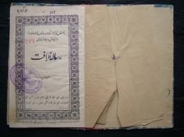 | Description / विवरण | It is written in black & brown colour ink on orange and white background. It is in persian language. It is about condnet personal written by sher alishah. |