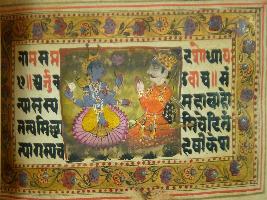 | Description / विवरण | A leaf of illustrated manuscript based on Bhagwat Gita depicting Krishna preaching Arjun. This manuscript has illustration on 26 pages. |