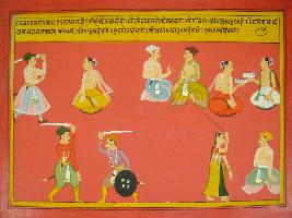 | Description / विवरण | Miniature painting based on Mahabharat - Vana parva depicting ill effect of anger. In anger, son kills his father, father kill son, women kills her husband and husband kill his wife. |