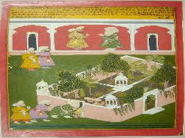 | Description / विवरण | Miniature painting based on Mullah-do-Piyaja. It depicts that king say that there are many flowers in the garden. They all go to see the garden the person tickles from behind to Mullah and Mullah in return tickles the king. |