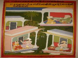 | Description / विवरण | Miniature painting based on Mullah-do-Piyaja. It depicts Mullah-do-Piyaja telling Akbar that by seeing quarrels in ones house is other is feeling happy and taking sweets at home. |