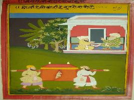 | Description / विवरण | Miniature painting depicting Mullah-Do-Piyaja telling the palanquin carrying women is like female genital organ. |
