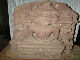 | Description / विवरण | It is a sculpture of Ashanasth, dhyanik parshavanath. Two male attendant is shown both side of parshavanath. Beside the top head two miniature sculpture is shown in shambhang dhyanik posture. |