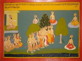 | Description / विवरण | Miniature painting based on Mahabharat - Vana parva depicting that after telling a story Vyas disappeared and Pandavas with Draupadi moving forward to Kamyaka vana. Through the bank of Saraswati river. |