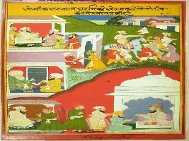 | Description / विवरण | Miniature painting based on Mullah-do-Piyaja. It depicts that one who is hard working and perform good deeps, he will always get success and peoples praises him but if a person is thief, everyone abuses him and no one show mercy on him. |