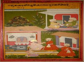 | Description / विवरण | Miniature painting based on Mullah-do-Piyaja. It depicts if a man is a liar he can t even able to arrange his own food. |