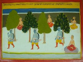 | Description / विवरण | Miniature painting based on Mahabharat - Vana parva. This painting is depicting journey of Arjun who crossed different mountains such as Himachal, Gandhmardhan. When he reached Gandhmardhan mountain, he saw many sages meditating. |