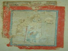 | Description / विवरण | It is a full size portrait of a king facing right side. He is shown holding a red stick and wearing white transparent kurta and blue pyjama and white dupatta. A halo is also shown behind him. |