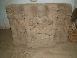 | Description / विवरण | It is a sculpture of Leelaya. Two female attendant is shown both side the main sculpture. Both female attendantbreast had chopped out. Leelaya had four armed shown. |