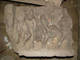 | Description / विवरण | It is a dancing female sculpture. Three dancing female sculpture is shown. In middle female sculpture breast and head had chopped out shown. |