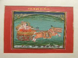 | Description / विवरण | Rudra God is shown on padashan. One hand is shown pair Nag-Nagin snake . Seven horses is shown pulling the cart Rath . Top portion is shown sky colour. |