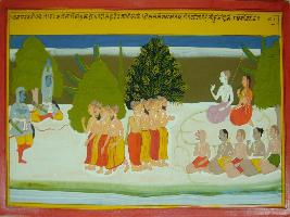 | Description / विवरण | Miniature painting based on Mahabharat - Vana parva depicting at the left side sages come to the Mahadev and Mahadev ask them not to fear and says that whatever they want he will give them. Then they come back. At the right side Arjun is doing penance for Shiv. |