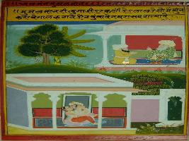 | Description / विवरण | Miniature painting depicting Mullah-Do-Piyaja telling that a Muslim woman makes love to his husband by cutting her cheek with husband s teeth and kissing. |