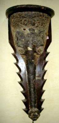 | Description / विवरण | Head of an alligator with its teeth and open mouth, kept on a wooden platform. It is preserved with taxidermy system. |