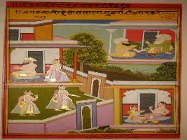 | Description / विवरण | Miniature painting based on Mullah-do-Piyaja. It depicts on the upper left, Mullah Do-Piyaja talking to Akbar and says that one should not attracted towards life after renunciating it. |