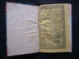| Description / विवरण | It is hand written in Persian language of Nastaliq style. The name of writer is not available.It gives the details, God is the master of world kaynat . This text is written in black ink on white ground within well decoration of golden florals with black colour border. |