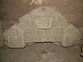 | Description / विवरण | It is a sculpture of Gauri. It is shown with her family. Middle part feet remainings broken. Different types of male attendant is shown. Upper top head of the sculpture had broken. |