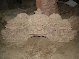 | Description / विवरण | It is a sculpture of architecture segment. Bavan is shown in middle. One male attendant is shown right lower portion. One horse ride male attendant is shown left lower portion. Just beside horse ride man a male attendant is shown in tribhang posture. |