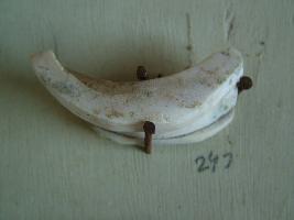 | Description / विवरण | These three broken pieces of bangles, made up of ivory is without decoration and are now in half moon shape. |