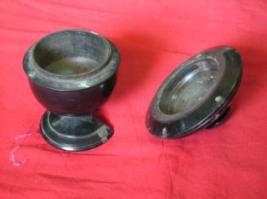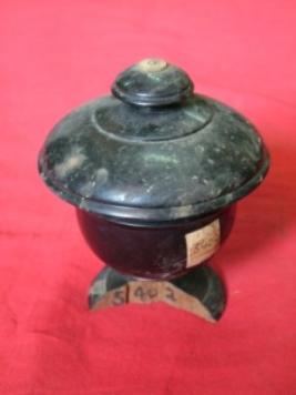 | Description / विवरण | It is a wooden toilet box with round stand which is broken. It is lacquered and painted in black. |