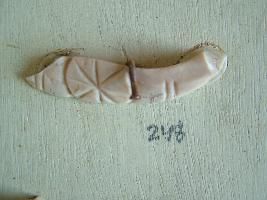 | Description / विवरण | It is a broken piece of an ivory bangle, having round medallion with lines of stick carved out in the middle portion. |