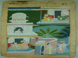 | Description / विवरण | An incomplete painting based on Mullah-do-Piyaja depicting Mullah and Akbar in the upper part of the painting where Mullah most probably says about the position business where a man came to a woman for fulfilling his physical desire. |