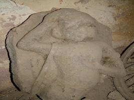| Description / विवरण | It is a sculpture of Hanuman in broken posture. One right armed of Hanuman is shown attached to head. Rest one left armed is shown attached to chest. Face is shown flat. Below the waist part of sculpture had broken. |