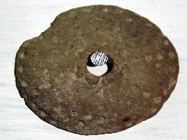 | Description / विवरण | Fragment of a terracotta wheel, only a part is available with rough and pitted surface. |