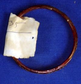 | Description / विवरण | Bangle made of glass having incised line designs in golden colour. |