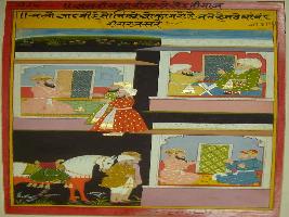 | Description / विवरण | Miniature painting depicting Mullah-do-Piyaja telling Akbar that good man is always of use. He can be relied of whenever needed. |