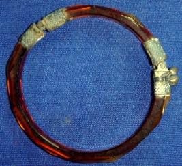 | Description / विवरण | Bangle made of glass having two metal locks which are used to open. Stars and moon are designed on the outer side. |