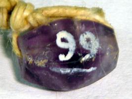 | Description / विवरण | Tiny stone bead of transparent purple color with a perforation. |
