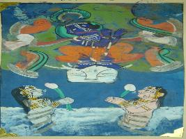 | Description / विवरण | Miniature painting depicting Shri Krishna being worshipping by two female worshippers. |