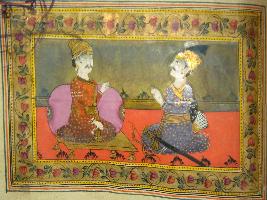 | Description / विवरण | A leaf of illustrated manuscript based on Bhagwat Gita depicting Yudhisthir and Arjun where a Yudhisthir is sitting on throne and Arjun is also sitting beside of him. This manuscript has illustrations on 14 pages. |