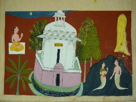 | Description / विवरण | Miniature painting depicting a Naga and Nagi in left part and a seated yogi in upper right part of the painting. It is an incomplete painting. |