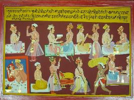 | Description / विवरण | Miniature painting based on Mahabharat - Udyam parva. It depicts how to win in various situations in life, always be aware of atheist, thieves. It also depicts one can win greedy people by giving them something. |
