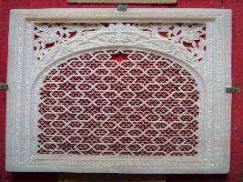 | Description / विवरण | It is a model of a small tracery window in alabaster of rectangular size. Two layered border. A arch is made inside which have rhythmic geometrically made floral patterns in perforated form. Near the head of the arch broad perforated floral design is seen. |