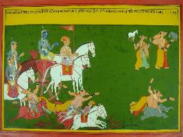 | Description / विवरण | Miniature painting based on Mahabharat - Ashwamegh parva depicting the army of Ram killing demons. |