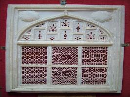 | Description / विवरण | It is a model of a small tracery window in alabaster a white, semi-transparent form of a mineral gypsum . Rectangular shaped. It have six same sized panels, having different geometrical perforated pattern. Three layered borders. A arch on top with small perforate |