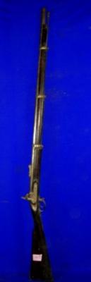 | Description / विवरण | Long single barrel, muzzle loading topidar gun with simple wooden butt. |
