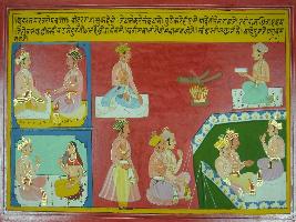 | Description / विवरण | Miniature painting based on Mahabharat - Udyam parva. It depicts that Vidur is telling Dhritrashtra that you have lot of money to buy weapons then king says that you are talking absolutely right but Duryodhan is not faithful. Its like female is Lakshmi but one must not capture it. |