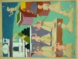 | Description / विवरण | Miniature painting of a city depicting a palace and some musician are playing instrument and some people are dancing. It is an incomplete painting. |