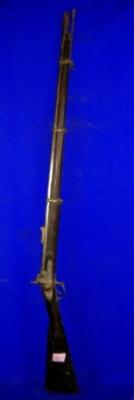 | Description / विवरण | Long single barrel, muzzle loading topidar gun with simple wooden butt. |