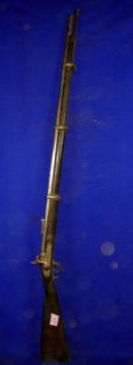 | Description / विवरण | Long single barrel, muzzle loading topidar gun with simple wooden butt. |