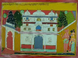 | Description / विवरण | Miniature painting based on Mahabharat - Sabha parva depicting Sabha is held and Yudhisthir is coming for this. |